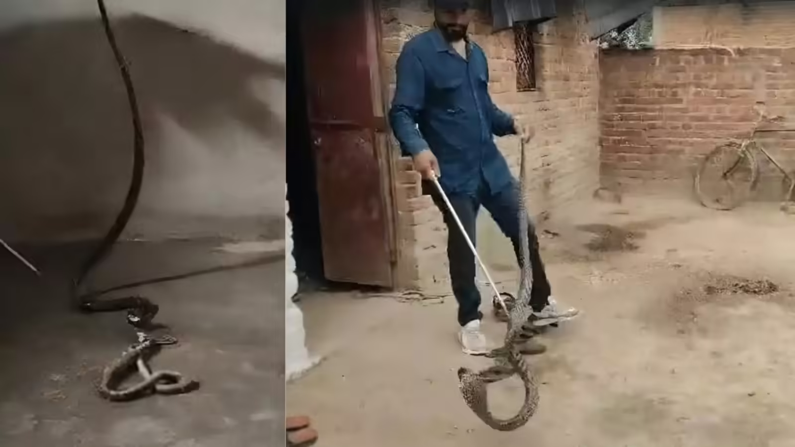 दमोह में हैरान करने वाला मंजर! कोबरा ने निगल लिया जिंदा सांप, सर्पमित्र ने ‘उल्टा लटकाकर’ ऐसे निकाला बाहर, लोग देखते रह गए