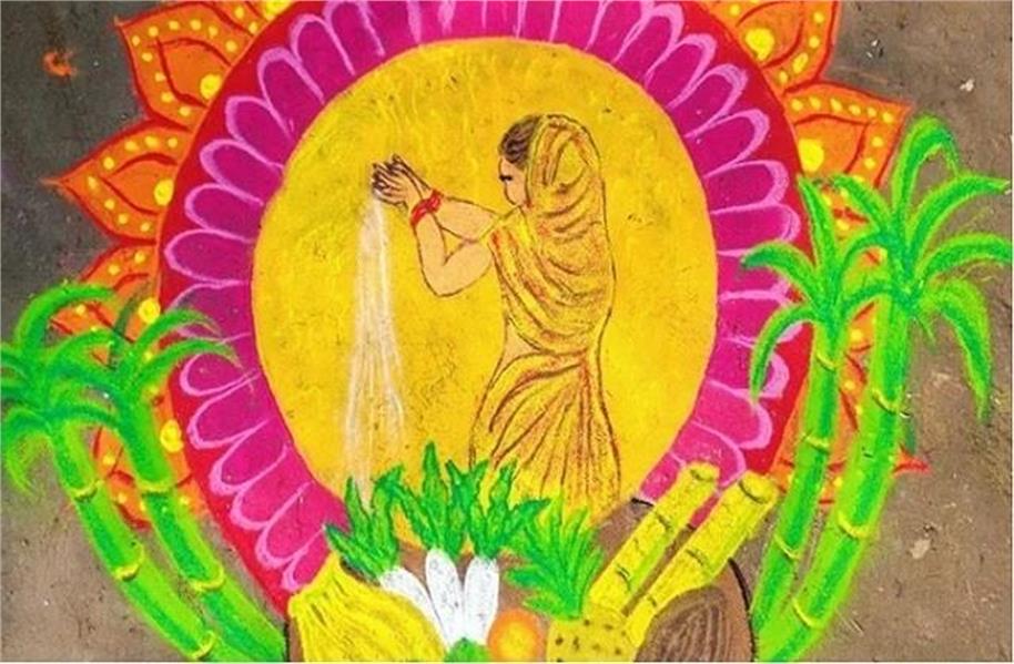 आज से छठ पर्व की शुरूआत हो चुकी है। इस साल छठ पूजा की शुरुआत आज 25 अक्टूबर से हुई और समापन 28 अक्टूबर को प्रातः कालीन अर्घ्य के साथ होगा। छठ पूजा एक प्रमुख भारतीय त्योहार है जिसे खासतौर पर बिहार, झारखंड, उत्तर प्रदेश, नेपाल, मध्य प्रदेश और पश्चिम बंगाल में मनाया जाता है। छठ पूजा की शुरुआत नहाय-खाय के साथ होती है और इसका समापन सूर्यदेव को सुबह अर्घ्य देने के साथ होता है। इन 4 दिनों में घर के आंगन, मंदिर और मोहल्ले की गलियों में एक से बढ़कर एक रंगोली देखने को मिलती है। अगर आपको भी छठ के मौके पर रंगोली बनानी है तो आप यहां से सुंदर सुंदर डिजाइन देख सकते हैं।