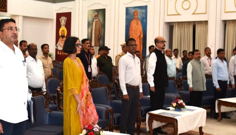 रायपुर: भारत के राष्ट्रीय गीत “वंदे मातरम्‘‘ के 150 वर्ष पूरे होने पर देशभर में कई आयोजन हो रहे हैं. इसी कड़ी में राजभवन, रायपुर में सामूहिक गायन का आयोजन किया गया. यहां राज्यपाल रमेन डेका, सचिव सी. आर. प्रसन्ना समेत राजभवन के अधिकारी कर्मचारी भी इसमें शामिल हुए.
