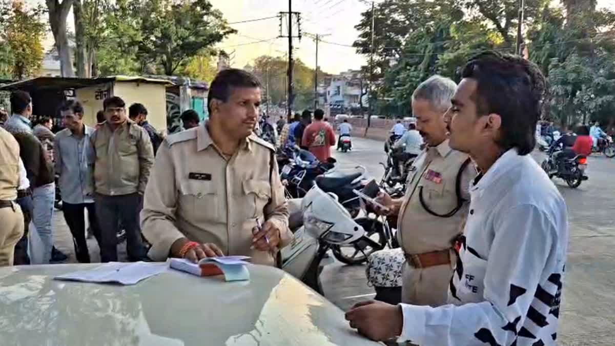 रतलाम : यातायात पुलिस रतलाम में ट्रैफिक नियम तोड़ने वालों का चालान नहीं काट रही बल्कि सजा के तौर पर उनसे परीक्षा ले रही है. ट्रैफिक पुलिस द्वारा विशेष परीक्षा का आयोजन शरू किया गया है. यहां ट्रैफिक नियम तोड़ने वालों को 20 प्रश्नों का एक प्रश्न पत्र थमा दिया जाता है. इस प्रश्न पत्र में ट्रैफिक अवेयरनेस को लेकर प्रश्न प्रतिभागियों से पूछे जाते हैं.