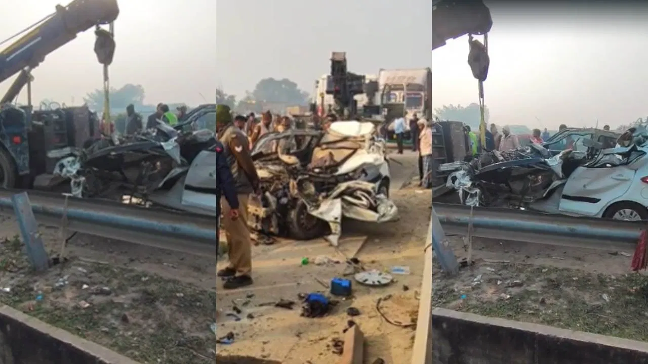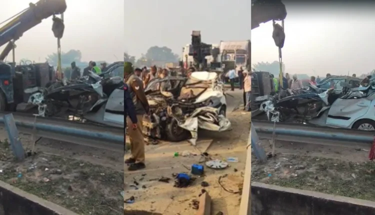 हाईवे पर भीषण हादसा! किनारे खड़े कंटेनर में घुसी तेज रफ्तार कार, उड़ गए परखच्चे, पिता-बेटे समेत 4 लोगों की दर्दनाक मौत