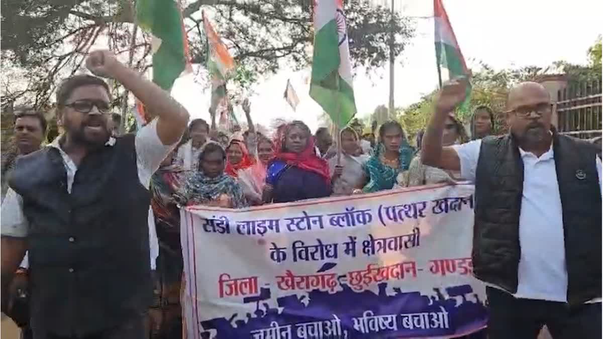 चूना पत्थर खदान का विरोध, ग्रामीणों का प्रदर्शन