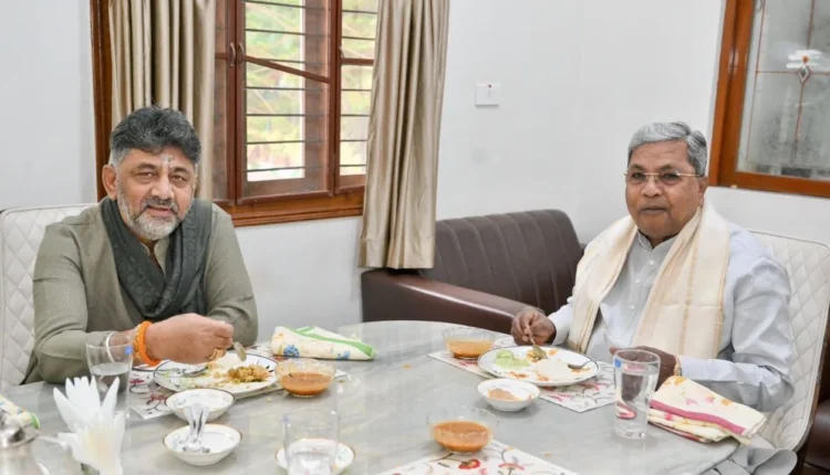 कर्नाटक में मुख्यमंत्री की कुर्सी को लेकर कांग्रेस के अंदर विवाद अभी पूरी तरह खत्म नहीं हुआ है. कर्नाटक के डिप्टी चीफ मिनिस्टर डीके शिवकुमार ने मुख्यमंत्री सिद्धारमैया को अपने घर ब्रेकफास्ट मीटिंग के लिए बुलाया है. इससे पहले कांग्रेस हाईकमान की तरफ से बुलाई गई मीटिंग में एकता दिखाने के लिए सिद्धारमैया और शिवकुमार ने 29 नवंबर को सिद्धारमैया के घर कावेरी में ब्रेकफास्ट मीटिंग की थी.