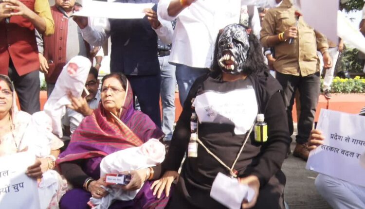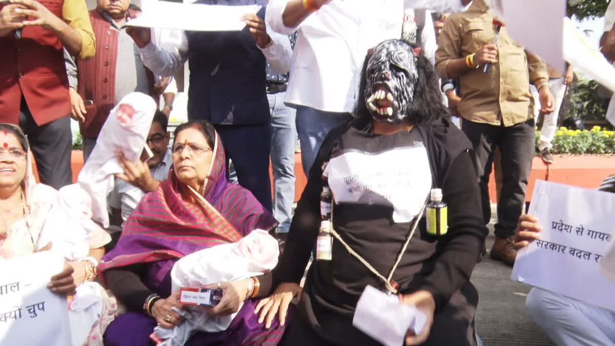 विधानसभा में राक्षसी बनकर विरोध जताने पहुंची विधायक, मंत्री बोले- चेहरा बचाने कांग्रेस का स्टंट