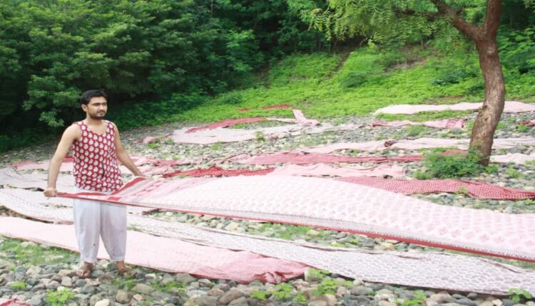 प्रिंटिंग के माध्यम बनाने के लिए इमली के बीज की लेई बनाते हैं. प्रिंटिंग लकड़ी के सांचों से की जाती है. प्रिंटिंग के बाद इसे धूप में सुखाया जाता है. फिर इसे 8-10 दिन के लिए वर्कशॉप के अंदर रख दिया जाता है. बाघिन के बहते हुए पानी में इसे 10 दिन बाद धोते हैं. पानी का बहाव जिस तरफ है उसकी रिवर्स दिशा में कपड़े को चलाते हैं. ताकि उसके अंदर मिनरल्स, फिटकरी, रस्ट निकल जाए. फिर एक बार इसे धूप में सुखा देते हैं.”