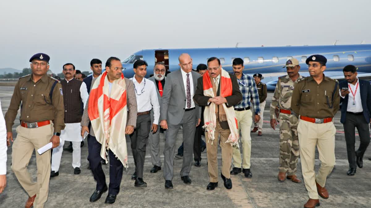 चीफ जस्टिस सूर्यकांत के साथ न्यायाधिपति जे.के. माहेश्वरी व सतीश चंद्र शर्मा भी खजुराहो पहुंचे. खजुराहो एयरपोर्ट पर उच्च न्यायालय जबलपुर खण्डपीठ ग्वालियर के न्यायाधिपति आनंद पाठक व विवेक रूसिया, रजिस्ट्रार जनरल धरमिंदर सिंह, प्रधान जिला व सत्र न्यायाधीश रविंदर सिंह, मुख्य न्यायिक मजिस्ट्रेट स्वाति निवेश जायसवाल ने सीजीआई का स्वागत व अगवानी की. इस दौरान खजुराहो एयरपोर्ट पर सीजेआई को गार्ड ऑफ ऑनर दिया गया.