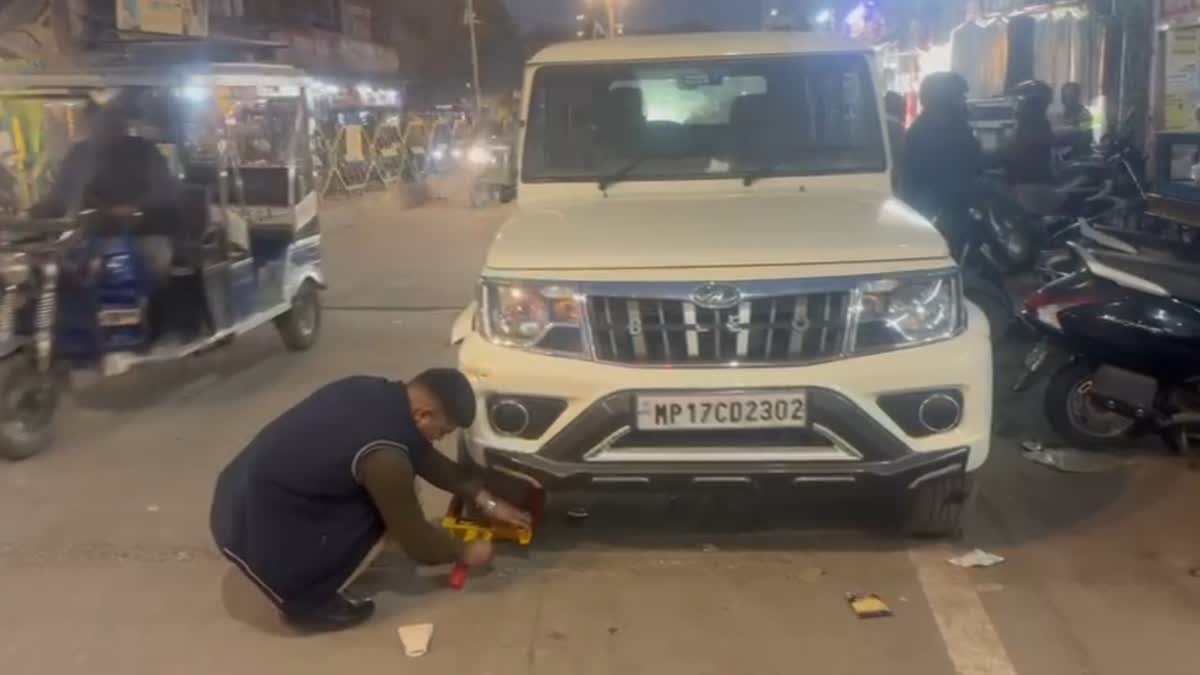 रीवा में गाड़ियों के पहियों में लगाई गई बेड़ियां, ट्रैफिक पुलिस का चक्का अरेस्ट एक्सपेरिमेंट
