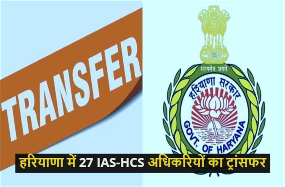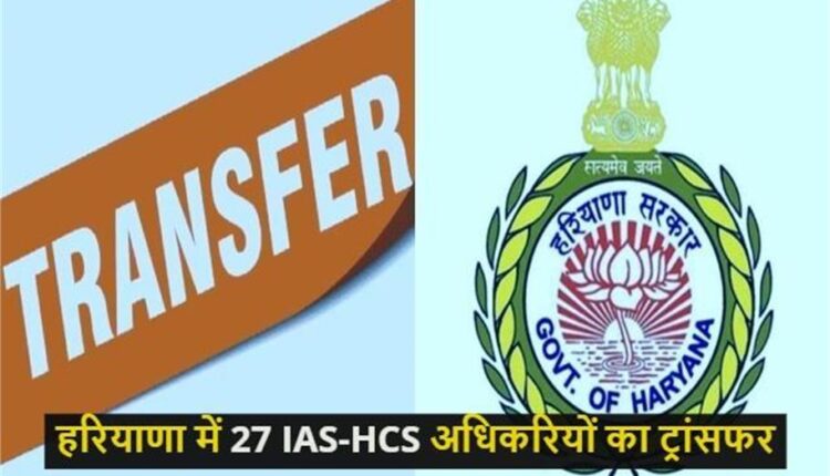 चंडीगढ़ : हरियाणा सरकार ने बड़ा प्रशासनिक फेरबदल करते हुए 27 IAS और HCS अधिकारियों के तबादला किया है।जारी आदेशों के अनुसार यह तबादले तत्काल प्रभाव से लागू होंगे। इस सूची में कुल 27 अधिकारियों को नई जिम्मेदारियां सौंपी गई हैं।