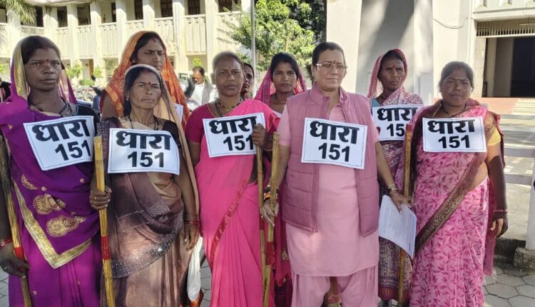 छिन्दवाड़ा : गुलाबी साड़ी हाथ में डंडा और गले में धारा 151 लिखे पोस्टर, छिंदवाड़ा की सड़कों पर महिलाओं को इस तरह देख हर किसी के मन में बस यही सवाल है. आखिर छिंदवाड़ा की महिलाओं को ये क्या हुआ? माजरा तब समझ आया जब महिलाएं कलेक्टर कार्यालय पहुंचीं और धरना देने लगीं. जब अधिकारियों ने प्रदर्शन का कारण पूछा पता चला कि महिलाएं जब अवैध शराब बिक्री के विरोध में आंदोलन करती हैं तो उन पर धारा 151 लगाकर जेल भेज दिया जाता है. इसलिए आंदोलन से पहले ही वे खुद धारा 151 का पोस्टर लटकाकर घूम रही हैं.