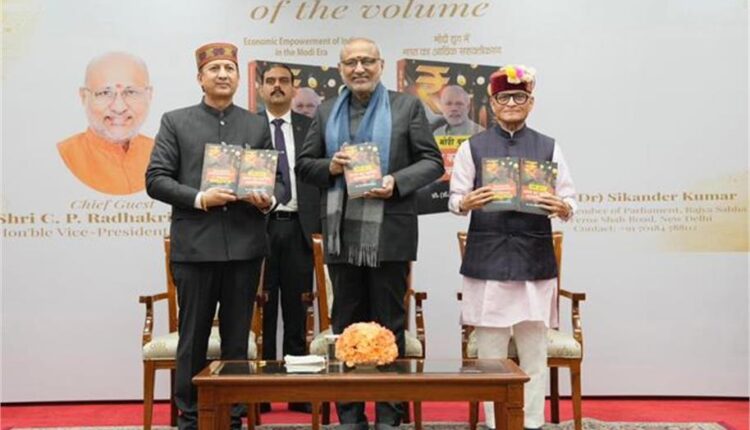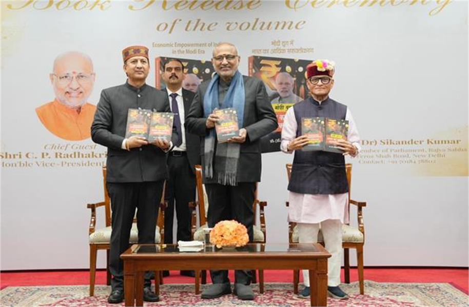 नई दिल्ली/धर्मशाला : उपराष्ट्रपति सीपी राधाकृष्णन ने हिमाचल के राज्य सभा सांसद प्रोफेसर (डॉक्टर) सिकंदर कुमार द्वारा प्रधानमंत्री नरेन्द्र मोदी के पिछले 11 साल के कार्यकाल के दौरान आर्थिक क्षेत्र में प्राप्त की गई उपलब्धियों पर लिखी पुस्तक “मोदी युग में भारत का आर्थिक सशक्तिकरण “का आज उपराष्ट्रपति एन्क्लेव नई दिल्ली में विमोचन किया।