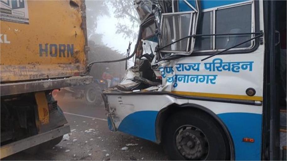 यमुनानगर: भारी धुंध के चलते हरियाणा रोडवेज की बस खड़े ट्राले से टकरा गई जिसमें बस को भारी नुकसान हुआ और चार यात्रियों को भी चोट लगी। जिन्हें यमुनानगर सिविल अस्पताल दाखिल कराया गया है।
