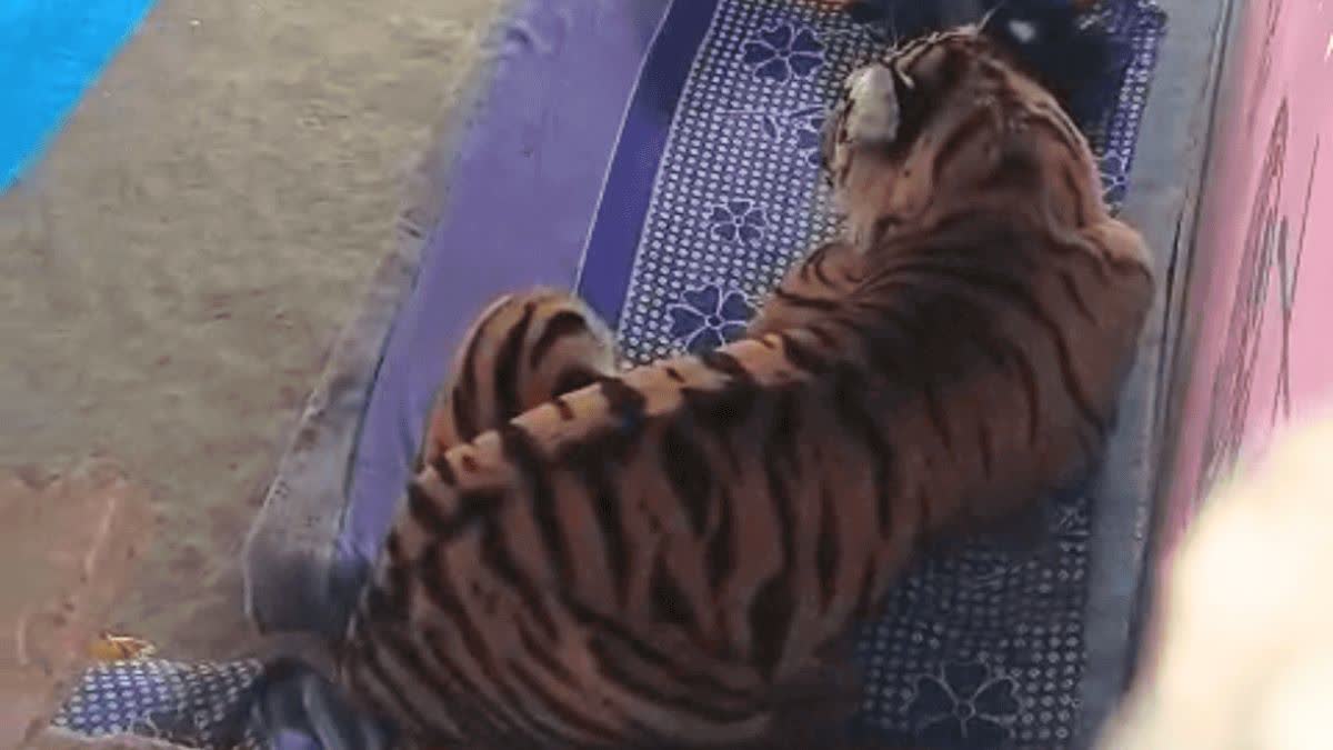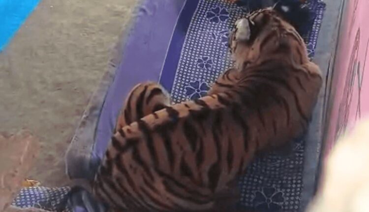 तभी इसी समय एक अजीबोगरीब घटना तब हुई, जब वो बाघ दुर्गा प्रसाद द्विवेदी नाम के व्यक्ति के खेत में ही बने एक मकान के अंदर घुस गया. वहां मौजूद प्रत्यक्षदर्शियों ने बताया कि बाघ सीधे कमरे के अंदर पहुंचा और वहां रखे एक बिस्तर पर जाकर बड़े शान से बैठ गया. घर के अंदर बाघ के बिस्तर पर बैठने की खबर जैसे ही गांव में फैली लोगों में हड़कंप मच गया. कुछ लोगों ने काफी सतर्कता से कमरे के ऊपर से ही उस बाघ के आराम फरमाने का वीडियो भी बना लिया, और अब वही वीडियो वायरल भी हो रहा है.