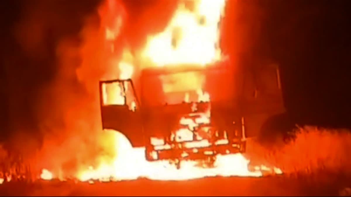 चलते ट्रक में लगी आग से ग्रामीणों ने हड़कंप: कड़ाके की ठंड और आधी रात के सन्नाटे के बीच सड़क पर धूं-धूं कर जलते ट्रक को देख ग्रामीणों में हड़कंप मच गया. ग्रामीण बड़ी संख्या में मौके पर जुटे. ग्रामीणों का कहना है कि क्षेत्र में इस तरह की यह पहली बड़ी घटना है. सूचना मिलने पर पुलिस मौके पर पहुंची है. फिलहाल ट्रक पूरी तरह जलकर खाक हो चुका है.