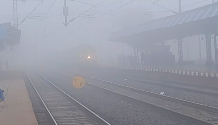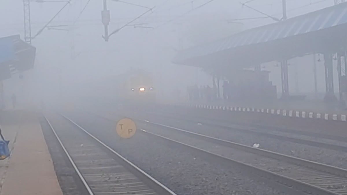 कई ट्रेनें लेट, स्टेशन पर मुश्किल से दिख रही पटरी