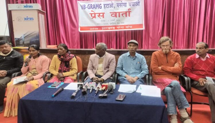 रांची: केंद्र सरकार द्वारा 2005 के मनरेगा कानून को संशोधित कर विकसित भारत गारंटी फॉर रोजगार एंड आजीविका मिशन (ग्रामीण) यानी वीबी जी राम जी कानून 2025, को 18 दिसंबर 2025 को पारित किया. इसको लेकर बहस छिड़ी हुई है – एक पक्ष तारीफ कर रहा है तो दूसरा सवाल उठा रहा है. मजदूरों के हित में काम करने वाली संस्था झारखंड नरेगा वॉच ने प्रेस कांफ्रेस कर इस नए कानून का विरोध किया है. साथ ही, इस संस्था नें 2 फरवरी को नरेगा दिवस के अवसर पर रांची में करीब 5 हजार मजदूरों के जुटान की घोषणा की है.