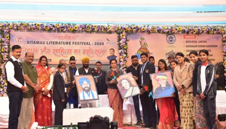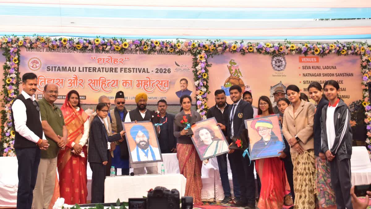 मंदसौर: छोटी काशी के नाम से प्रसिद्ध सीतामऊ में आयोजित साहित्य महोत्सव में देश की कई नामी हस्तियों ने शिरकत की. देश के कोने-कोने से आए साहित्यकारों और कला प्रेमियों ने हिंदी भाषा पर जोर देते हुए नई पीढ़ी से भारत की मौलिक संस्कृति और साहित्य को बढ़ावा देने की अपील की है. इस आयोजन में साहित्य और पर्यावरण से जुड़ी हस्तियों के अलावा बॉलीवुड के कलाकारों ने भी हिस्सा लिया.