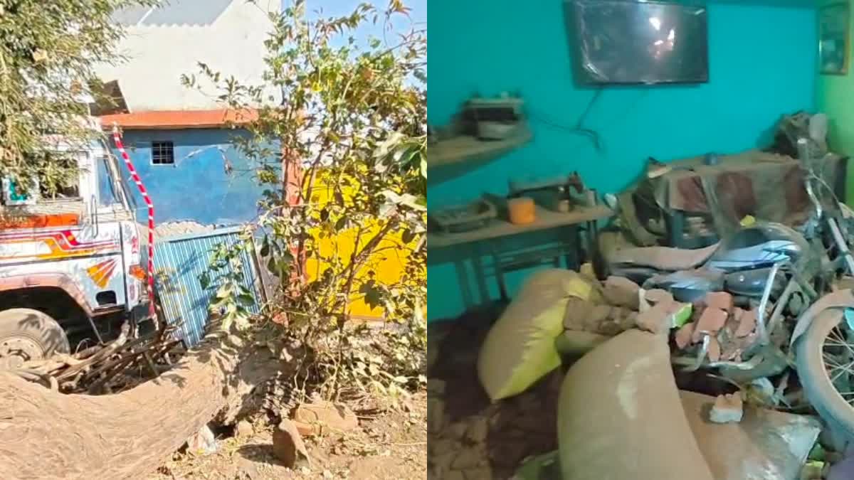 एक्सीडेंट देखने के लिए निकला था परिवार, खुद के घर में ही घुसा ट्रक