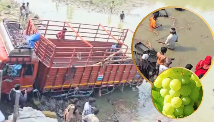 Darbhanga News: दरभंगा में नदी में गिरा अंगूर से भरा ट्रक, फल लूटने के लिए जान जोखिम में डाल पानी में कूदे लोग