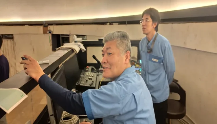उपकरणों को लगाने में जुटे जापानी टेक्नीशियन