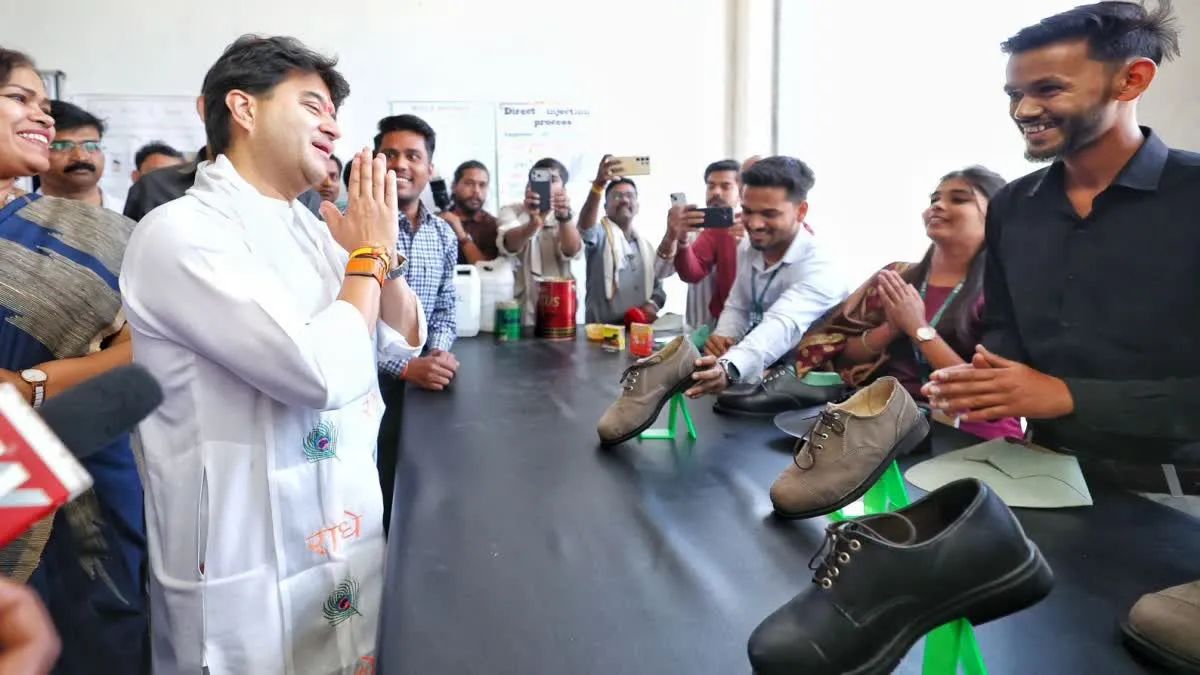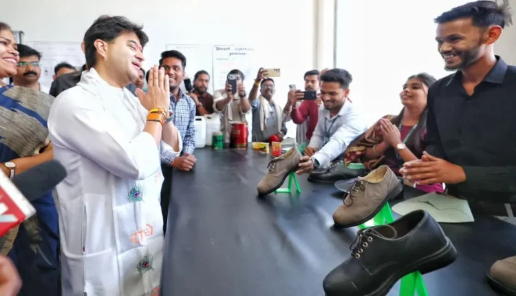 गुना/शुवपुरी: केंद्रीय मंत्री व स्थानीय सांसद ज्योतिरादित्य सिंधिया ने गुना के पास हरिपुर स्थित फुटवियर डिजाइन एवं डेवलपमेंट इंस्टीट्यूट पहुंचकर स्टूडेंट्स द्वारा बनाए फुटवियर के डिजायन ध्यान से देखी. ज्योतिरादित्य सिंधिया ने कहा “जब वह वर्ष 2007 में वाणिज्य एवं उद्योग राज्यमंत्री के रूप में अपनी जिम्मेदारी संभाल रहे थे, तब उन्होंने सोचा था कि एफडीडीआई जैसे इंस्टीट्यूट केवल महानगरों तक सीमित न रहें.”