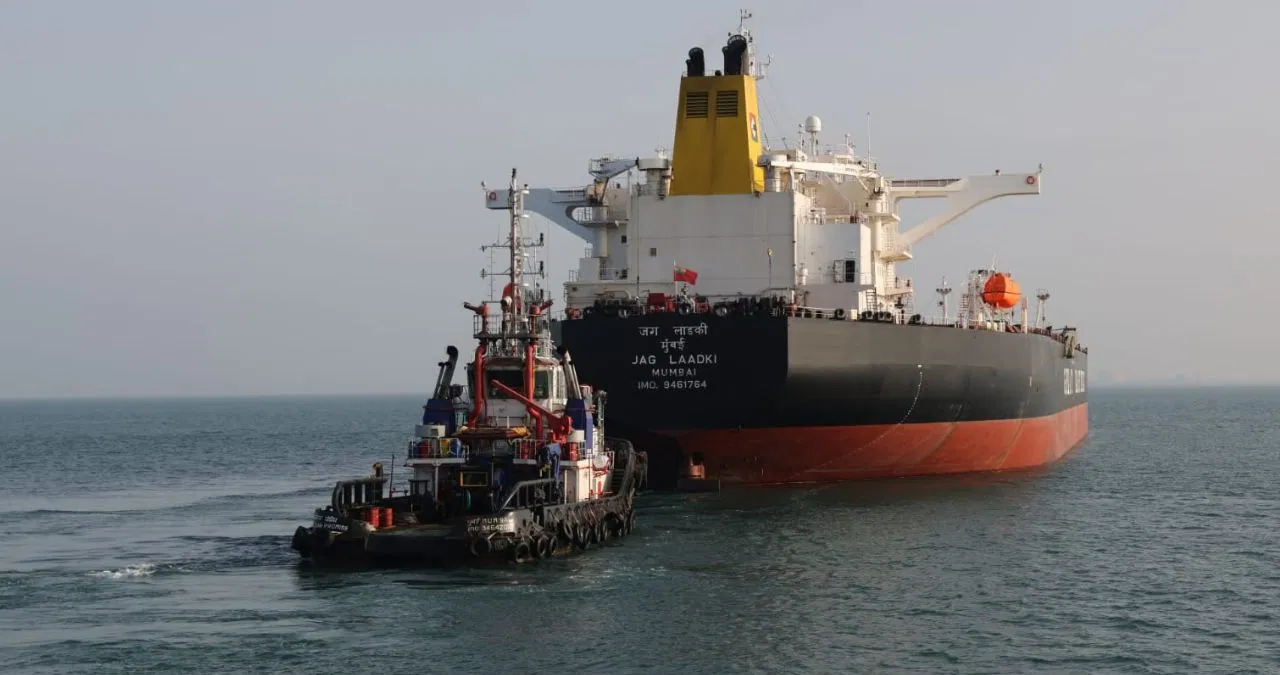 भारतीय झंडे वाला क्रूड ऑयल टैंकर ‘जग लाडकी’ सुरक्षित रूप से गुजरात के मुंद्रा पोर्ट की ओर पहुंच गया है. क्रूड ऑयल टैंक बुधवार को सुबह 5:51 बजे एंकरिज पर पहुंचा. टैंकर ने यूएई के फुजैराह पोर्ट से कच्चा तेल लोड किया था. करीब 80,000 टन मर्बन क्रूड ऑयल लेकर भारत के लिए रवाना हुआ था. जो 18 मार्च यानी बुधवार सुबह भारत पहुंच गया. यह तेल भारत की रिफाइनरियों के लिए अहम माना जाता है.