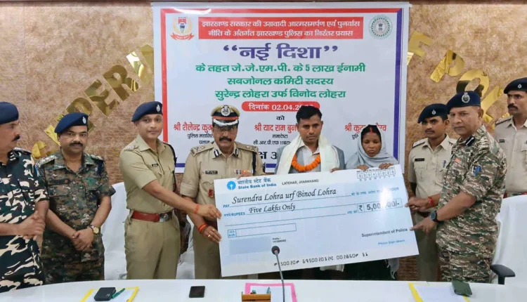 लातेहार में नक्सलियों को तगड़ा झटका! 5 लाख के इनामी सब-जोनल कमांडर सुरेंद्र लोहरा ने किया सरेंडर