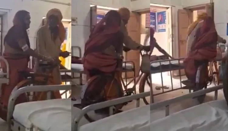 बताया गया कि यह बुजुर्ग अपनी पत्नी को इलाज के लिए हर 4-5 दिन में अस्पताल लेकर आता है. न कोई एंबुलेंस, न स्ट्रेचर की सुविधा- बस एक पुरानी साइकिल और जिम्मेदारी का बोझ. वह अपनी पत्नी को उसी साइकिल पर बैठाकर अस्पताल के अंदर लाता है और इलाज के बाद वापस ले जाता है.
