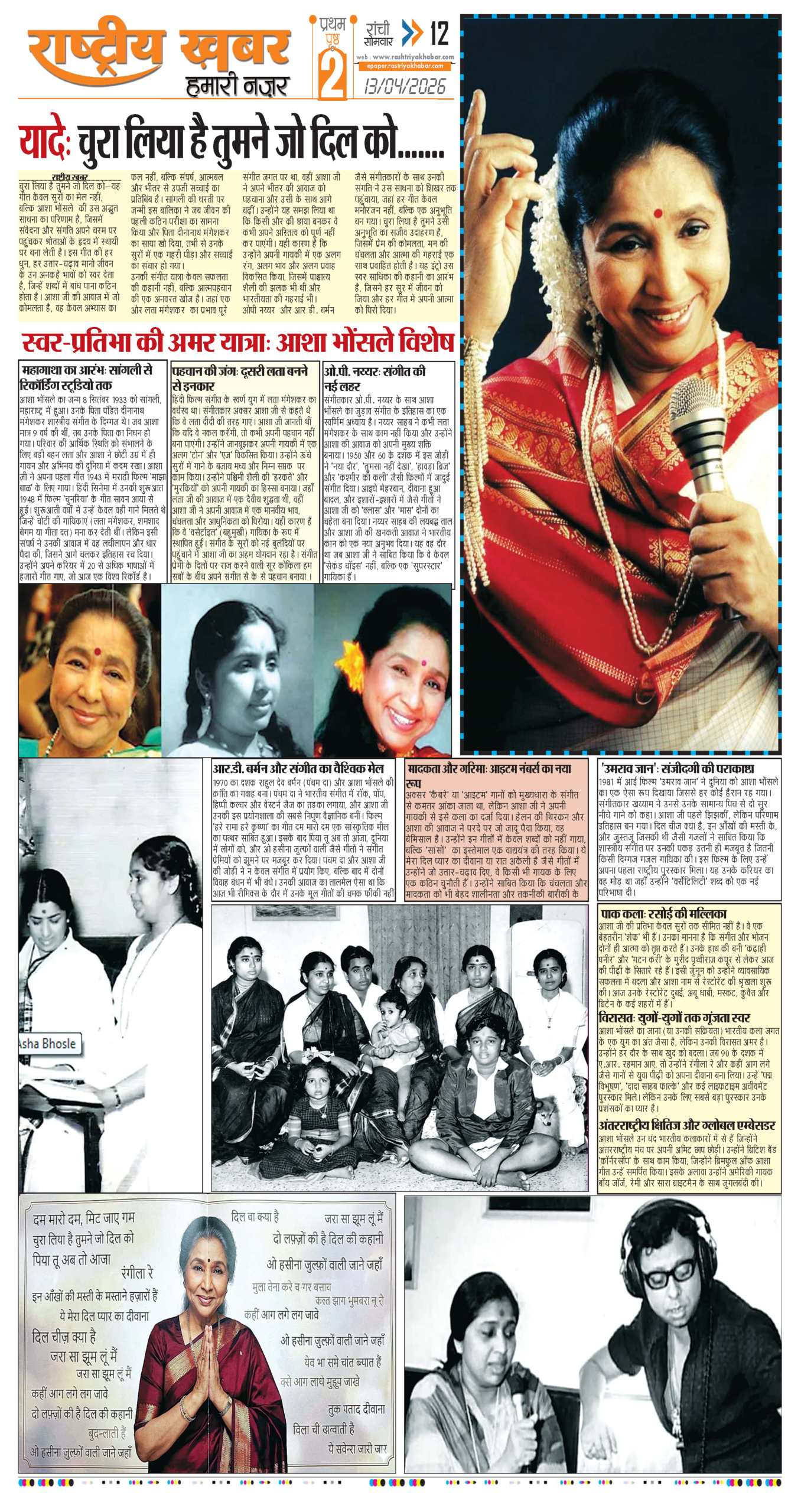 कालजयी आवाज आशा भोंसले का मुंबई में निधन