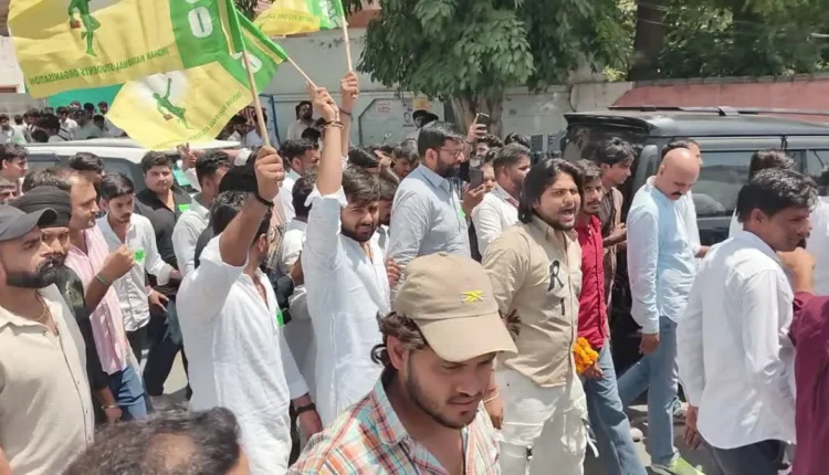 हिसार: हिसार की जीजेयू यूनिवर्सिटी में गुरुवार को जेजेपी की छात्र इकाई इनसो के छात्रों और पुलिस के बीच तीखी गहमागहमी देखने को मिली. सैकड़ों छात्र प्रदर्शन करते हुए वीसी ऑफिस तक पहुंच गए और गेट खोलने की कोशिश की, लेकिन वे सफल नहीं हो सके. कुलपति (वीसी) को पहले ही दूसरे गेट से बाहर निकाल दिया गया था, जिसके चलते छात्रों में और नाराजगी बढ़ गई.