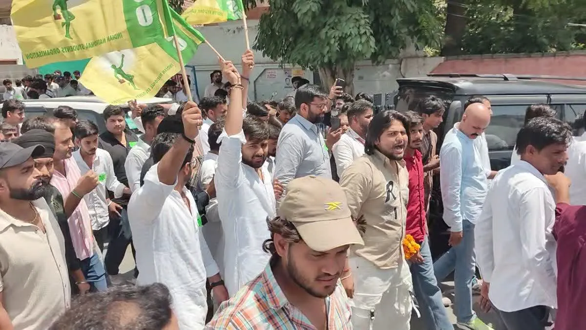 दिग्विजय चौटाला के नेतृत्व में प्रदर्शन तेज:जेजेपी के युवा नेता दिग्विजय चौटाला के नेतृत्व में छात्र यादव धर्मशाला से रैली निकालते हुए यूनिवर्सिटी पहुंचे. छात्र इनसो के झंडे लेकर प्रशासन के खिलाफ नारेबाजी करते हुए आगे बढ़े. बैरी गेट पार करने के बाद छात्र वीसी गेट के पास एकत्र हुए और जमकर विरोध प्रदर्शन किया.